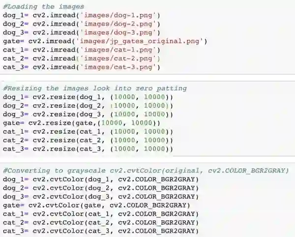 首先,加载保存在目录中的图像。其次,必须确保它们的大小相同,否则会出现尺寸不匹配的错误。问题是对其进行尺寸变换操作会导致图像失真,所以在找到比较合适的尺寸数字之前,可以尝试快速搜索方法,尺寸大小按照一定的规律设置,不断实验以找到最终比较合适的尺寸。接下来我们再实现一个功能,以便于看到测试图像是什么样子的。