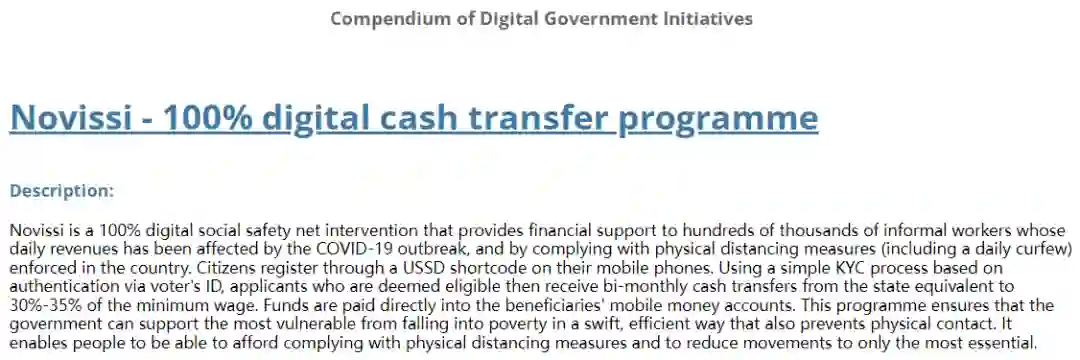 我们先来了解一下多哥的旗舰紧急现金转移项目 Novissi。2020 年 4 月,在首批新冠病例出现不久,多哥政府推出了这一项目。由于经济限制命令导致很多多哥人停工,并引发了广泛的粮食安全问题。Novissi 项目旨在为受影响最重的人提供生存现金援助。