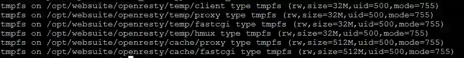 通过使用tmpfs,可将Nginx的临时目录及缓存目录放到内存中,降低对磁盘IO的消耗。