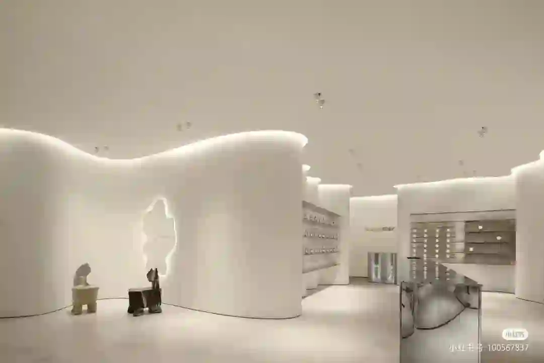 观夏将其在三里屯太古里的体验店“观夏客厅”定义为“洞穴客厅”,将水波、山石、云雾等元素融入门店装潢之中。走进门店,顾客们首先看到的不是林林总总的商品,而是粗粝岩石,幽深的造景,扑鼻而来的是「昆仑煮雪」的味道,仿佛真的置身于昆仑山间。