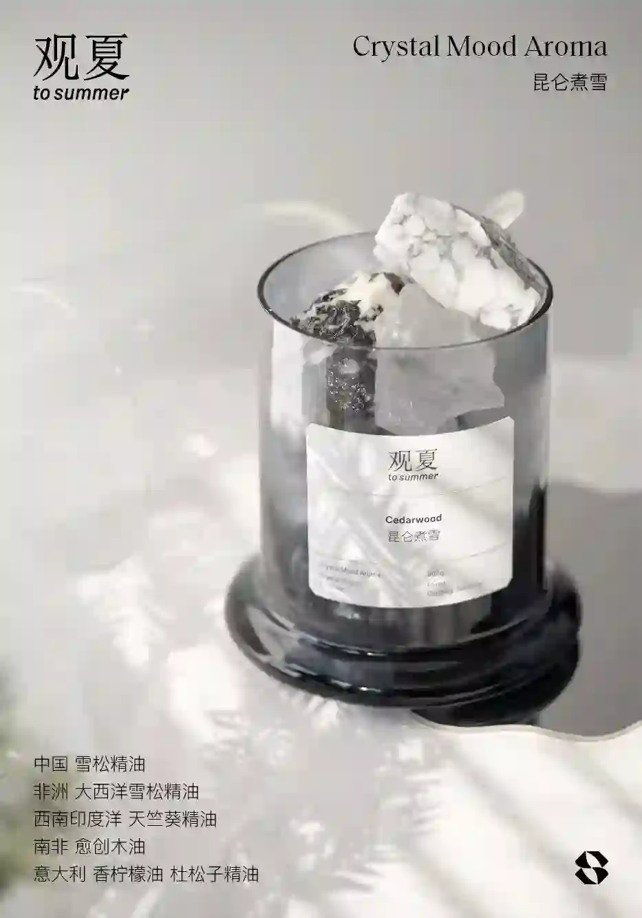 观夏2019年1月正式推向市场,推出了6款晶石情绪香薰产品。随后,又推出了四季香薰系列,分别为「昆仑煮雪」、「福开森路」、「重庆森林」和「颐和金桂」。可以说,着四款香薰是观夏最具有特色的产品,也是展示观夏品牌定位的窗口。