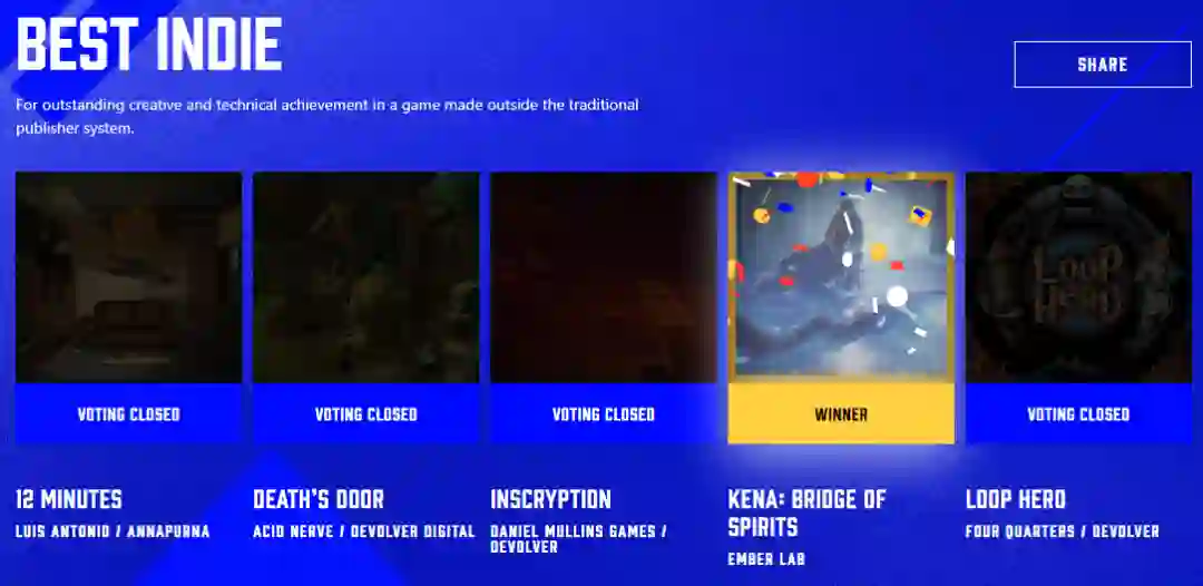 TGA 是游戏届一年一度的盛典,而今天 9:00 TGA 2021 颁奖典礼在美国洛杉矶的微软剧院圆满结束。《双人成行》获得了 2021 年度的“最佳年度游戏”奖项,《凯娜:精神之桥》则获得了“最佳独立游戏”,“最佳游戏指导”奖项则由《死亡循环》斩获。颁奖仪式上同样公开了许多新老游戏的新消息,如《Alan Wake2》、《战锤40K 星际战士2》等作品。以下分别是今天的获奖游戏:
