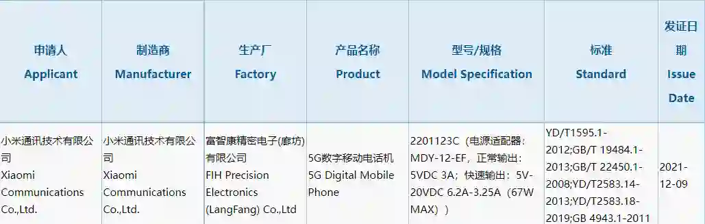 继昨天 moto 抢先推出了定价低于 3000 元的骁龙 8 Gen1 机型之后,昨天小米 12 标准版也获得了 3C 认证。按照相关认证信息可以看到,这款型号为 2201123C 的未发布新机型内置 4500mAh 电池,最高支持 67W 快充。此前,小米 12 Pro 版本的入网认证已经被曝光,信息显示该机支持 120W 快充,因此可以判断小米 12 标准版与小米 12 Pro 的快充规格上会有显著差距。另外,据悉定位小屏旗舰的小米 12X 将会配备一块 6.3 英寸屏幕,支持 120Hz 高刷,搭载骁龙 870 移动平台。