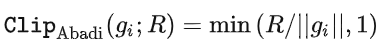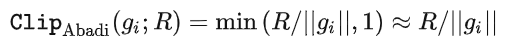其中 Clip 叫做 clipping function,就跟常规的 gradient clipping 一样,梯度长于 R 就剪到 R,小于 R 就不动。
