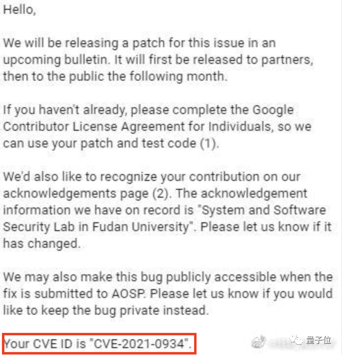 杨珉教授和其同事将这一漏洞报告给安卓安全团队,谷歌将其评为“高严重级”。