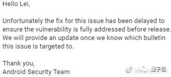 之后的事情我们就知道了:谷歌一拖再拖,直到16个月之后的今年年底,终于发来了一封“问题补丁即将公布”的邮件: