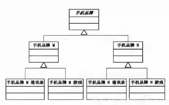 手机品牌和软件是两个概念,不同的软件可以在不同的手机上,不同的手机可以有相同的软件,两者都具有很大的变动性。如果我们单独以手机品牌或手机软件为基类来进行继承扩展的话,无疑会使类的数目剧增并且耦合性很高。