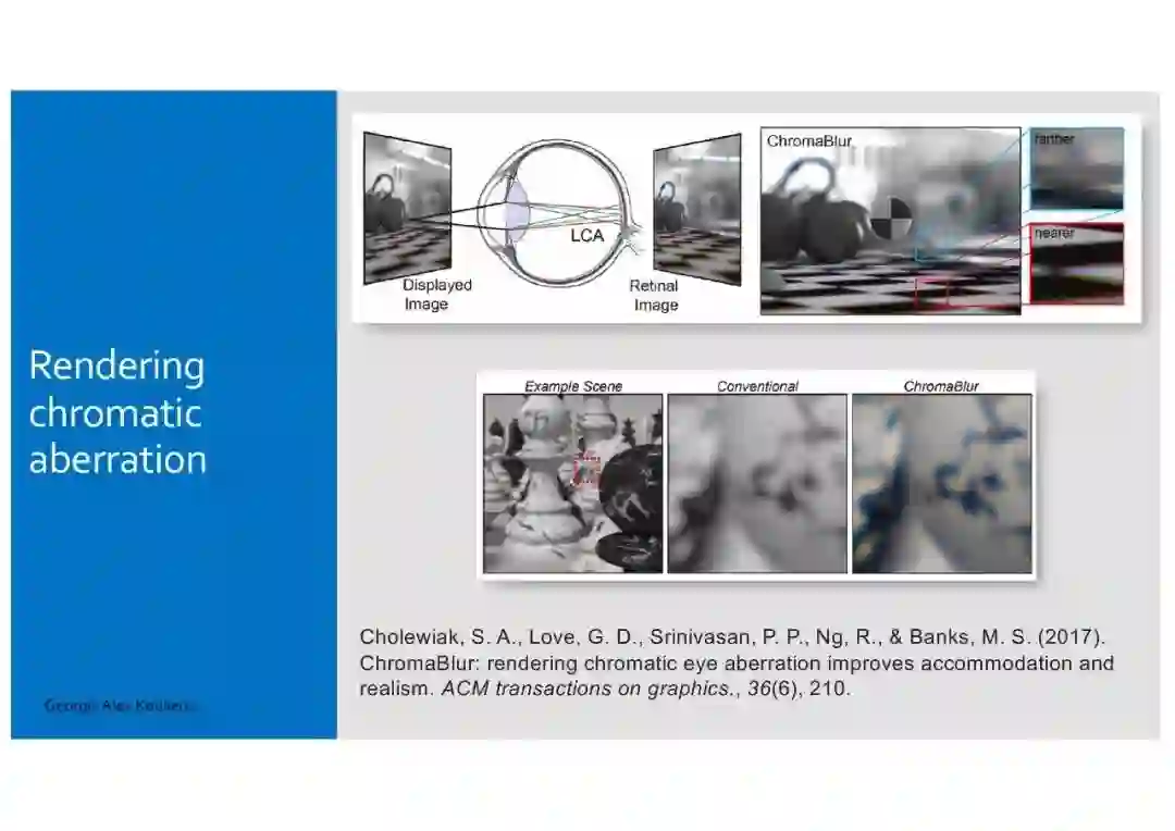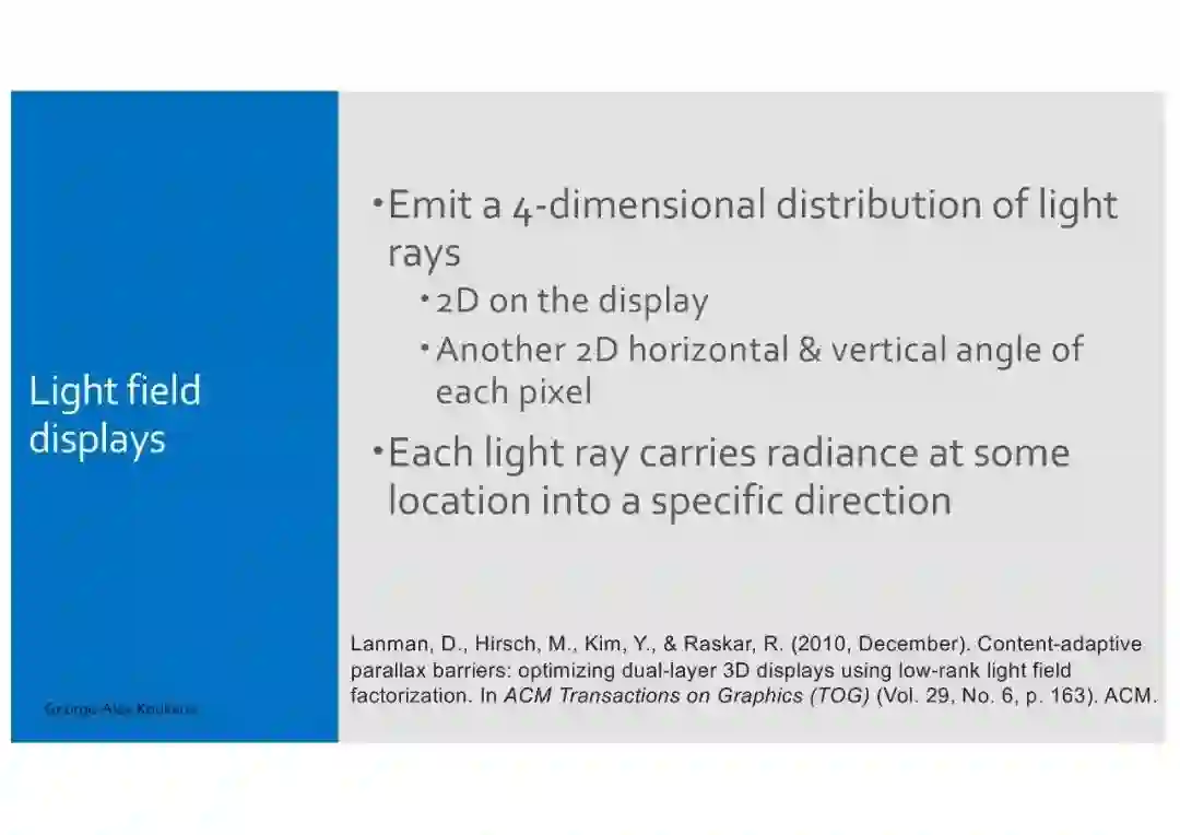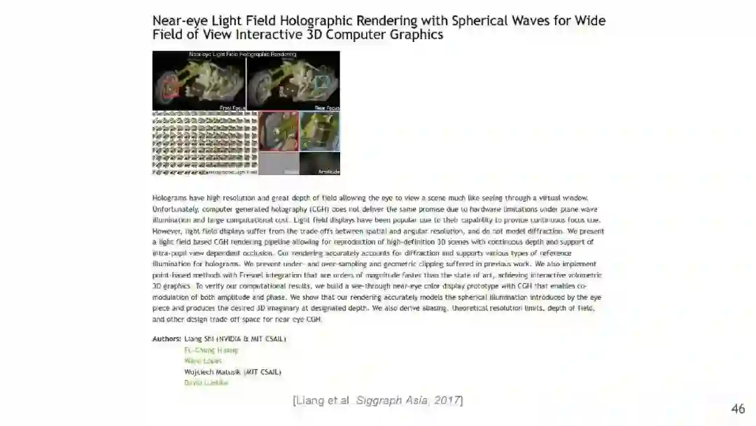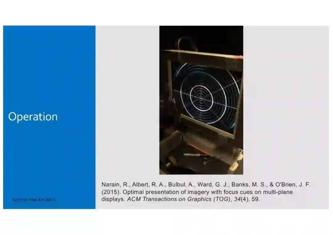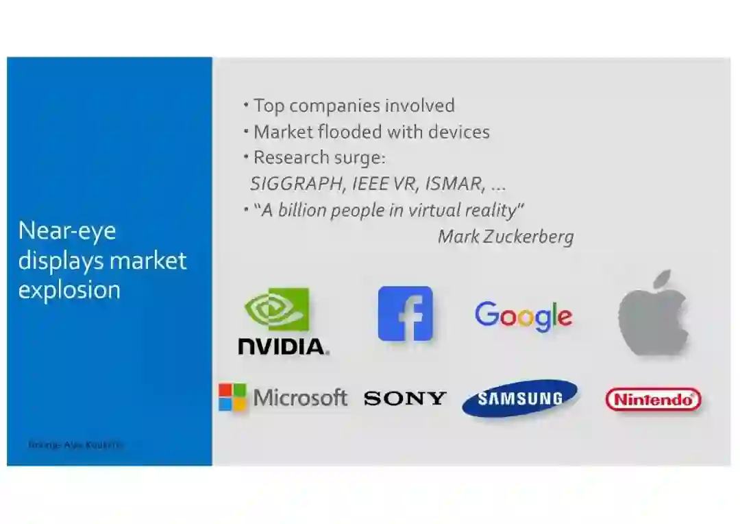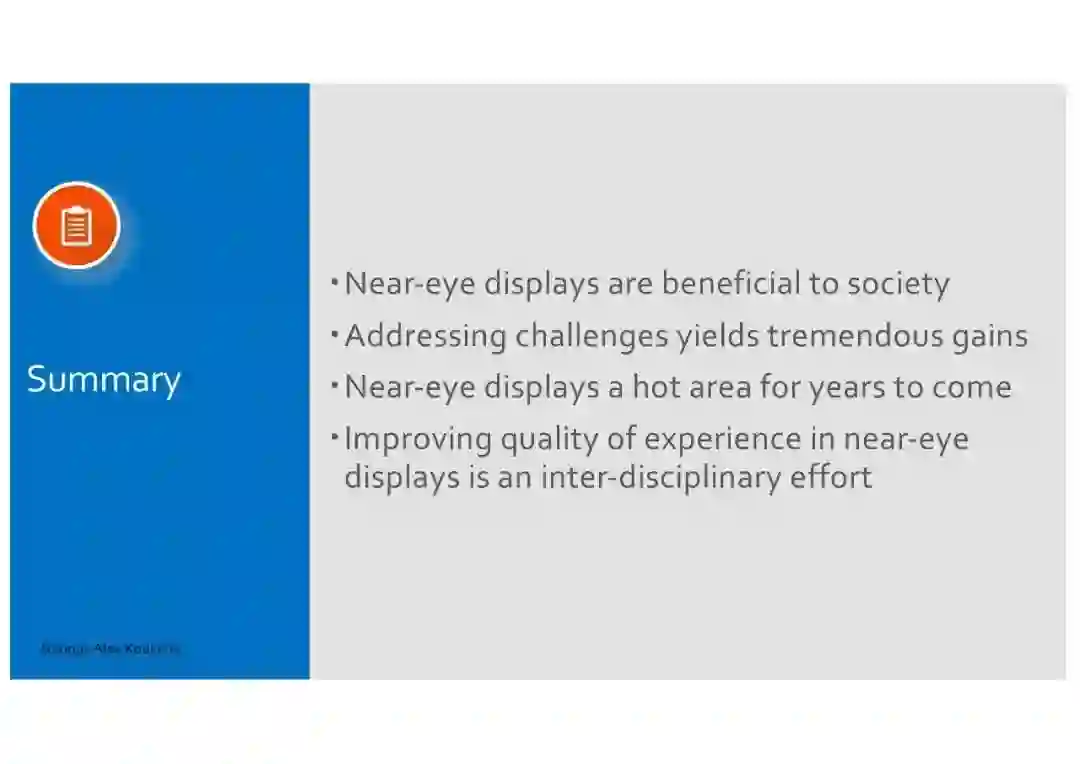 【导读】近眼(VR / AR)显示需要考虑技术,交互及视觉质量问题。 本教程将概述顶尖的VR / AR显示技术,重点关注技术,交互和感知问题,如果解决这些问题,将推动下一代显示技术的发展。本教程将展示近眼显示器的最新进展,并分析与下一代AR / VR显示技术相关的学术和工业研究的未来途径。