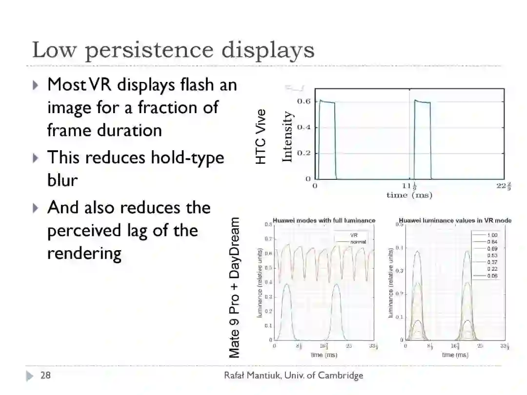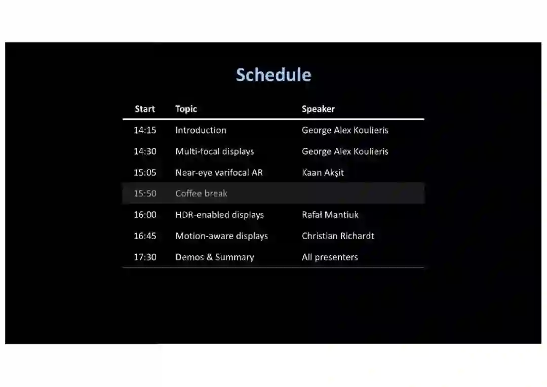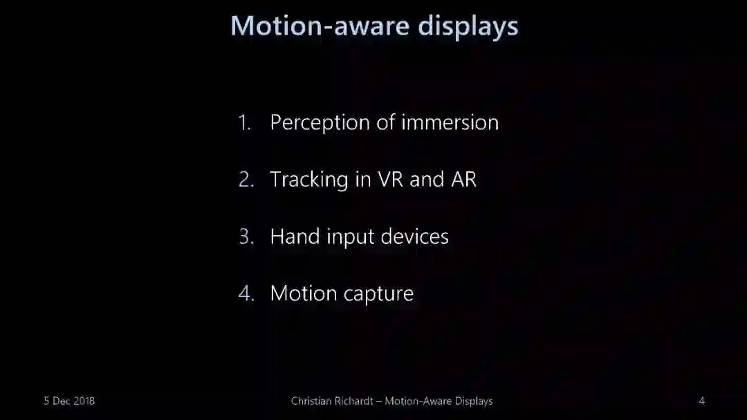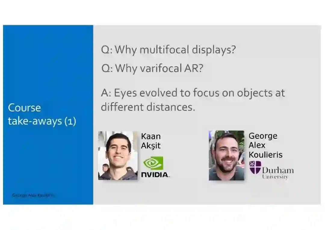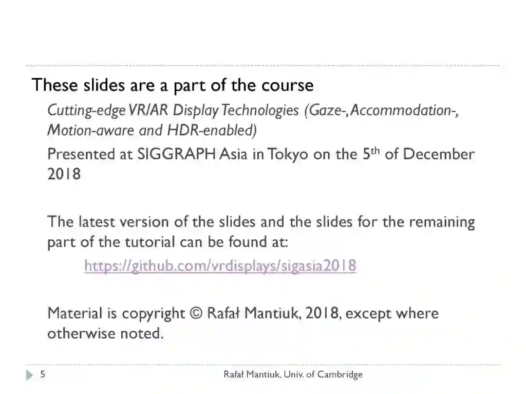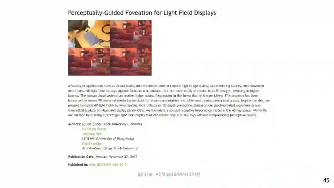 【导读】近眼(VR / AR)显示需要考虑技术,交互及视觉质量问题。 本教程将概述顶尖的VR / AR显示技术,重点关注技术,交互和感知问题,如果解决这些问题,将推动下一代显示技术的发展。本教程将展示近眼显示器的最新进展,并分析与下一代AR / VR显示技术相关的学术和工业研究的未来途径。