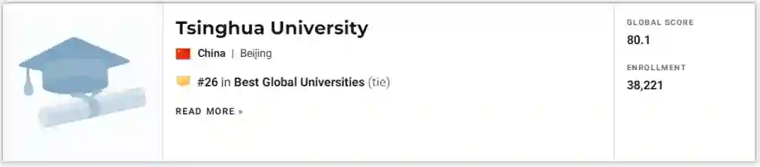 今年清华大学排名全球26位,相比去年进步2位,进入全球Top30,居大陆高校第一。