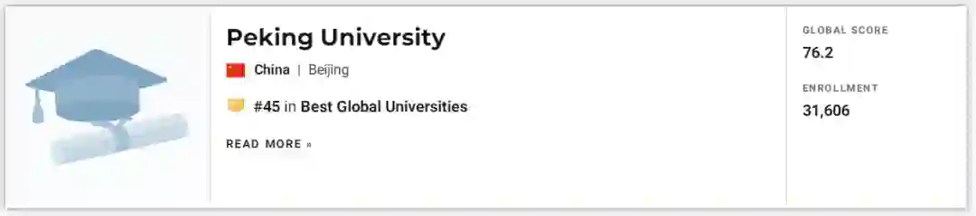 北京大学紧随其后,排名全球第45位,相比去年也进步了6位。清华和北大也是仅有的2所入围全球前100名的大陆高校。