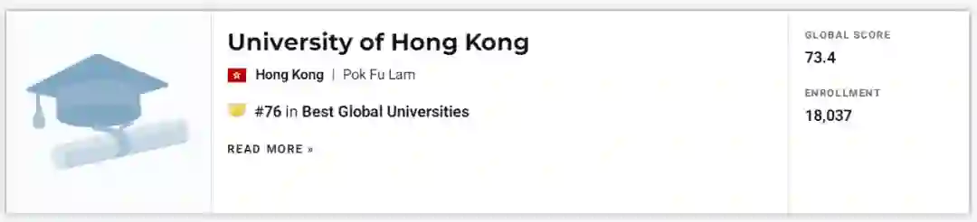 中国香港院校也有上升,香港大学上升7位,名列76;香港中文大学上升13位,名列82;香港科技大学上升4位,名列105;香港理工大学上升38位,名列124;香港城市大学上升29位,名列141。