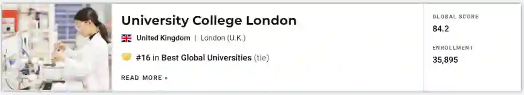 其中,牛津大学和剑桥大学的排名一直都非常稳固,UCL连续2年排名上升,反超帝国理工(第20名),名次为第16名。
