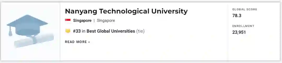 南阳理工大学摆脱「Top40守门员称号」,从38位升至33位。
