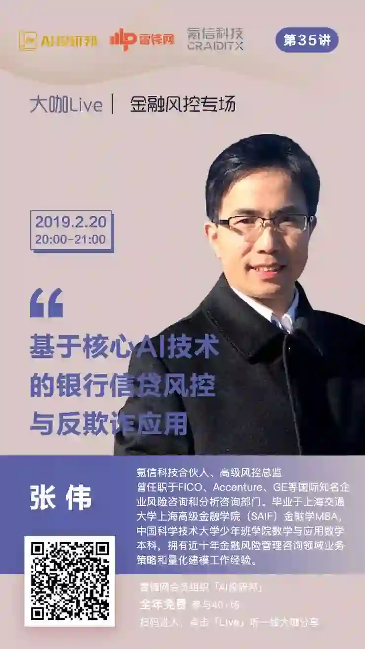 而最新一期——2月20日(周三)20:00,将邀请氪信科技技术合伙人、高级风控总监张伟,分享基于核心AI技术的银行信贷风控与反欺诈应用。