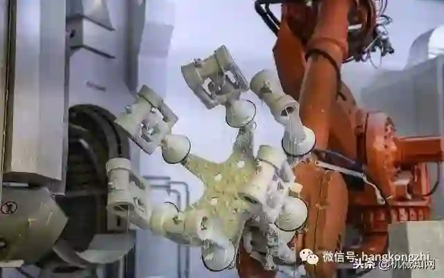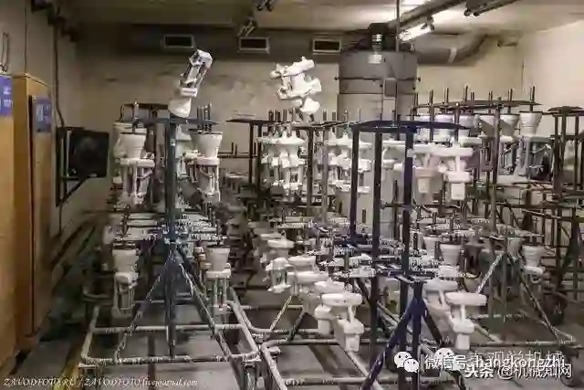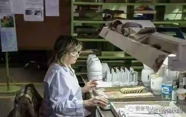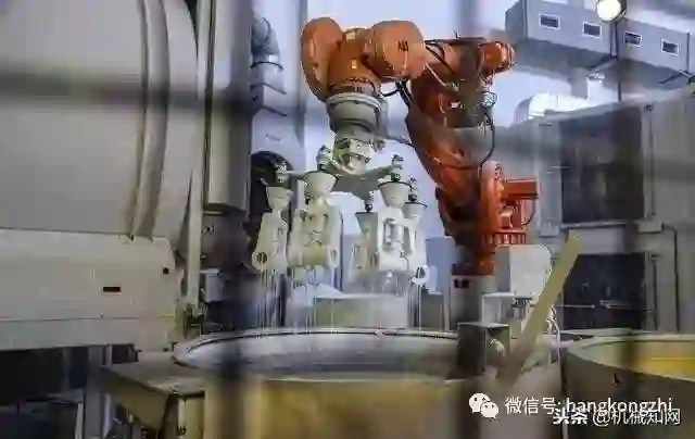 用机械手在陶土液中旋转,使其均匀包裹住模型的任何部位。