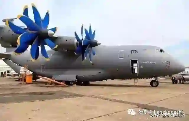 桨扇发动机加双螺旋桨对转就变成这个样子,由于桨扇发动机的螺旋桨与发动机同速,因此桨扇的螺旋桨转速比涡桨发动机高得多,带来更大动力,更高燃油经济性的同时,也因为转速的大幅增长桨扇发动机的噪音也十分可怕,一般不会用在需要舒适安静的客机上,目前基本上只有军用运输机在使用。