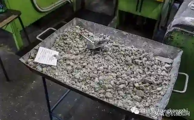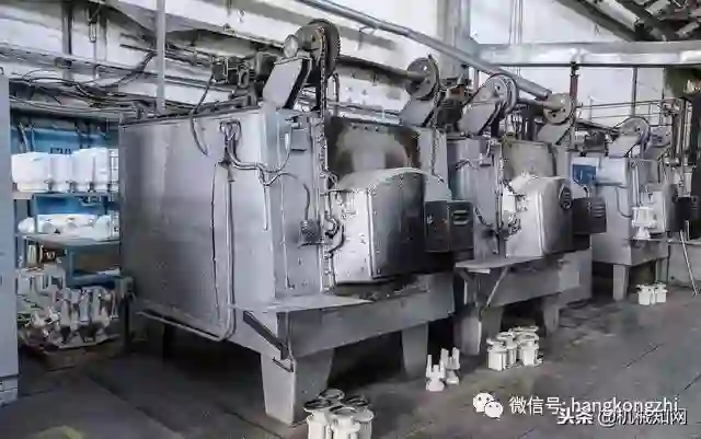 这里正在加工瓷土,将瓷土打碎,制作涡轮叶片的内芯。