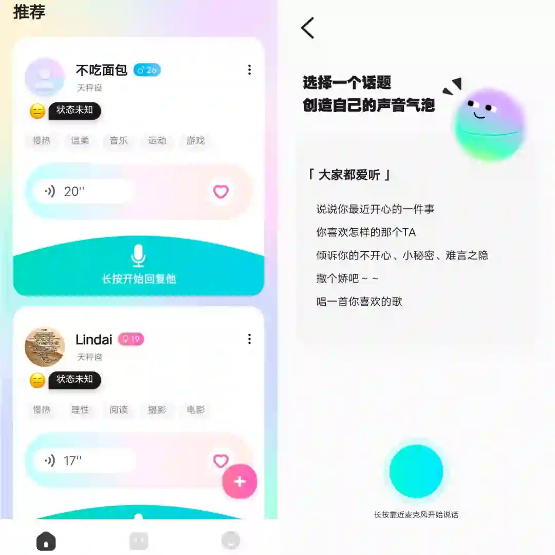 百度于近期推出了新的语音社交App“嗨圈圈”。用户初次注册需通过完成前期“灵魂测试”,即可匹配与自己最兴趣相投的人进行语音聊天,寻找另一个TA。(新言财经)
