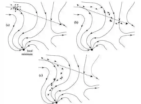 在机器学习优化算法中,GD(gradient descent)是最常用的方法之一,简单来说就是在整个训练集中计算当前的梯度,选定一个步长进行更新。GD的优点是,基于整个数据集得到的梯度,梯度估计相对较准,更新过程更准确。但也有几个缺点,一个是当训练集较大时,GD的梯度计算较为耗时,二是现代深度学习网络的loss function往往是非凸的,基于凸优化理论的优化算法只能收敛到local minima,因此使用GD训练深度神经网络,最终收敛点很容易落在初始点附近的一个local minima,不太容易达到较好的收敛性能。