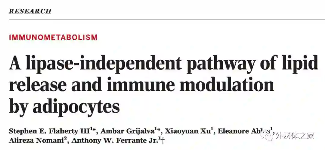 StephenE. Flaherty III, Ambar Grijalva, Xiaoyuan Xu, Eleanore Ables, Alireza Nomani, Anthony W. Ferrante Jr. A lipase-independent pathway of lipid release and immune modulation by adipocytes. Science 01 Mar 2019: Vol.363, Issue 6430, pp. 989-993 DOI: 10.1126/science.aaw2586
