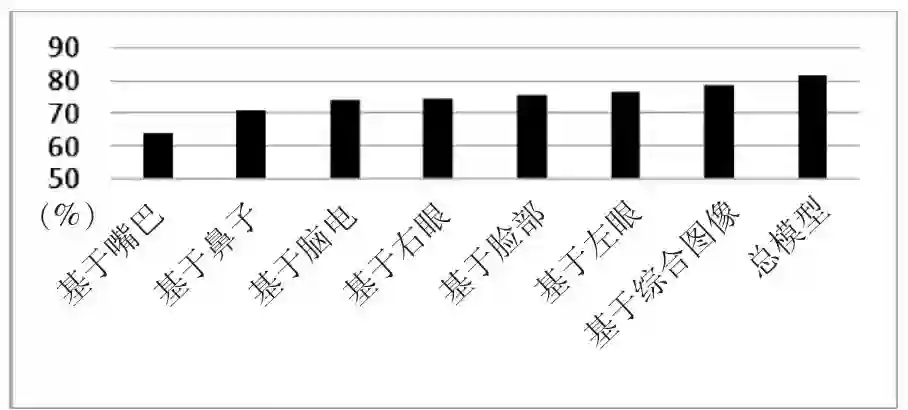 模型训练总时长约为64小时(平均每个模型需要约1小时),所有模型的训练误差都达到收敛,如图8所示。除了基于脑电的预测模型和基于鼻部的预测模型以外,其它模型在训练数据集上的准确率均达到90%以上,说明这些模型达到了训练目标。