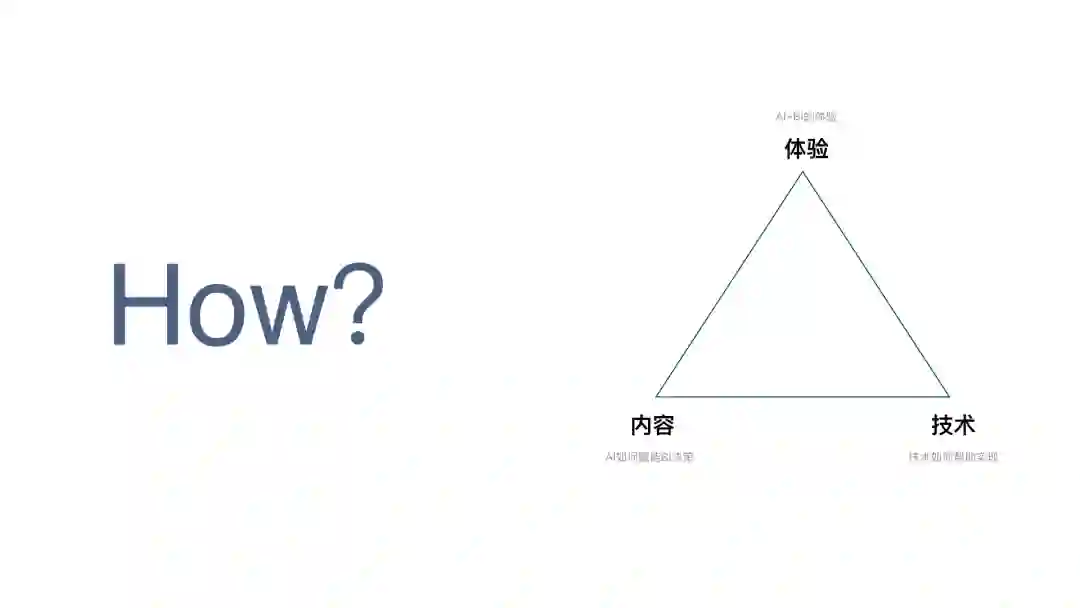 针对未来BI产品, 我们可以从内容,技术,体验三个方面来看设计师如何进行参与。即: