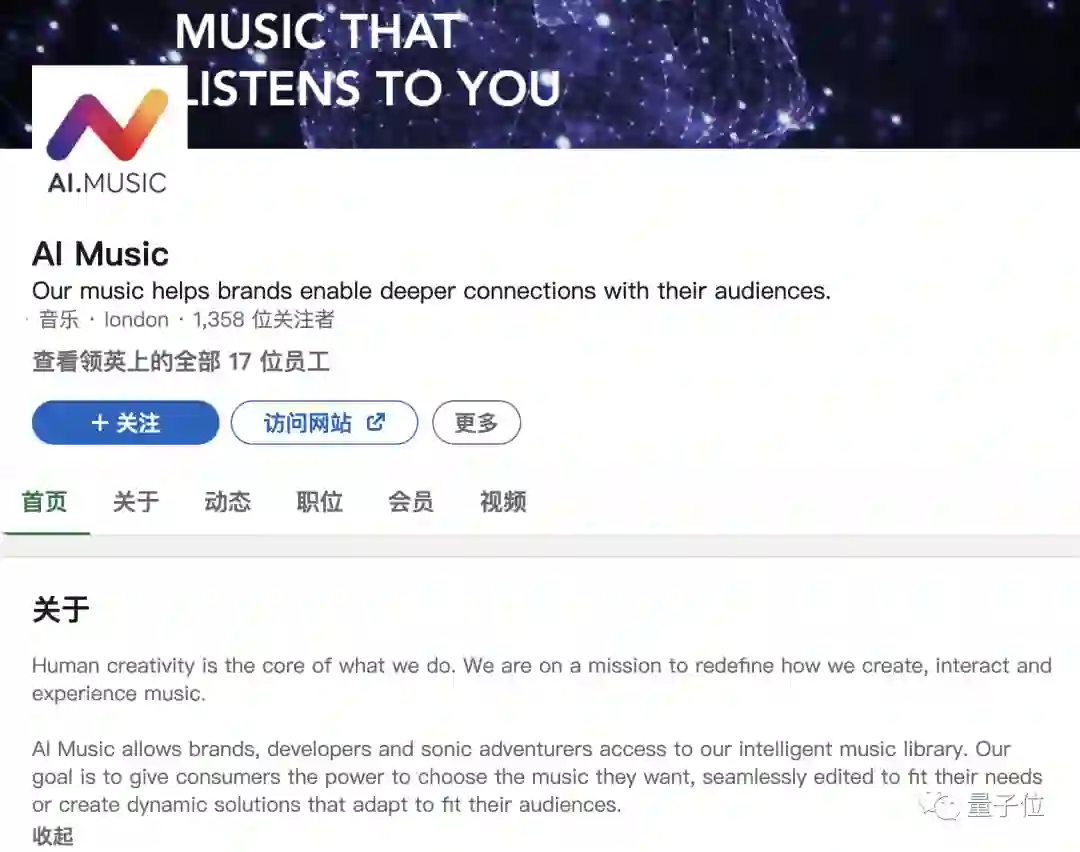 从Linkin页面介绍可以看出,这家公司使命在于重新定义创造、互动和体验音乐。合作伙伴可以访问他们的智能音乐库。