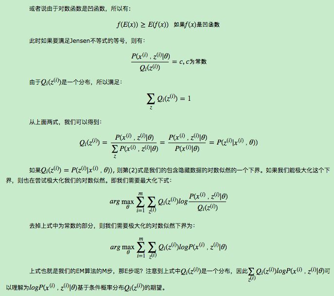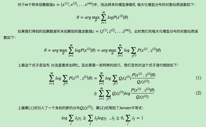 当然,K-Means算法是比较简单的,实际中的问题往往没有这么简单。上面对EM算法的描述还很粗糙,我们需要用数学的语言精准描述。