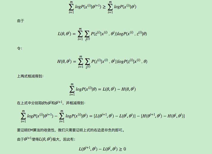 首先我们来看第一个问题, EM算法的收敛性。要证明EM算法收敛,则我们需要证明我们的对数似然函数的值在迭代的过程中一直在增大。即:
