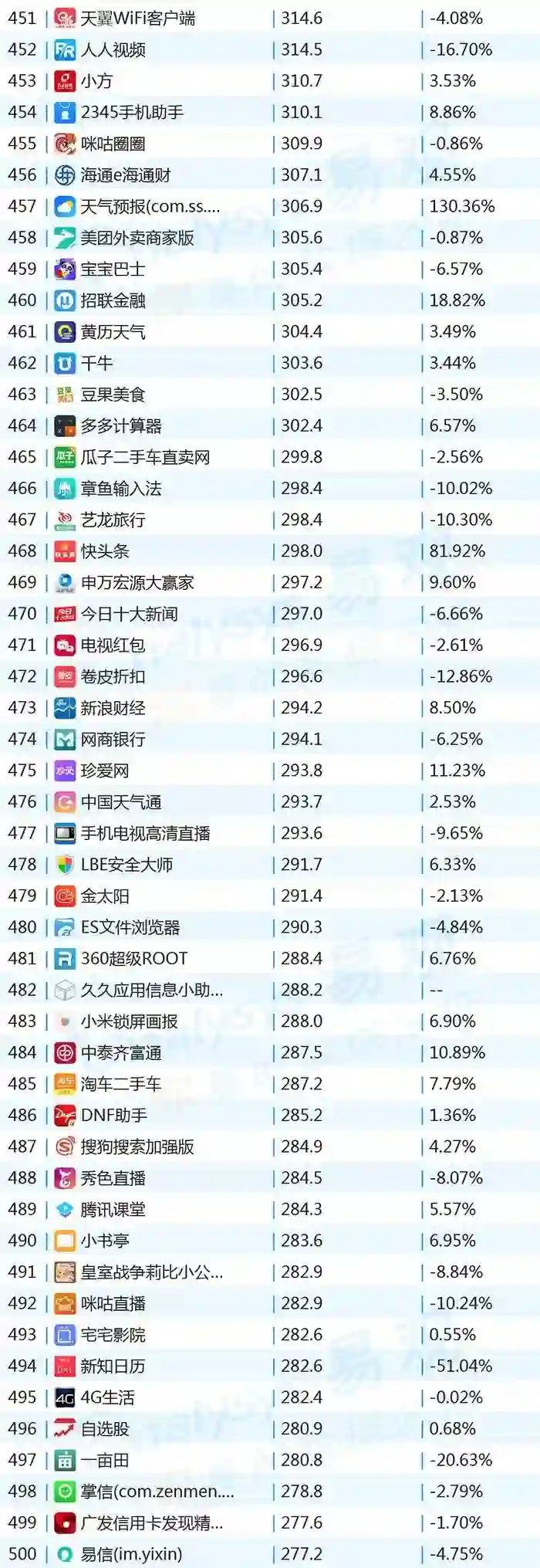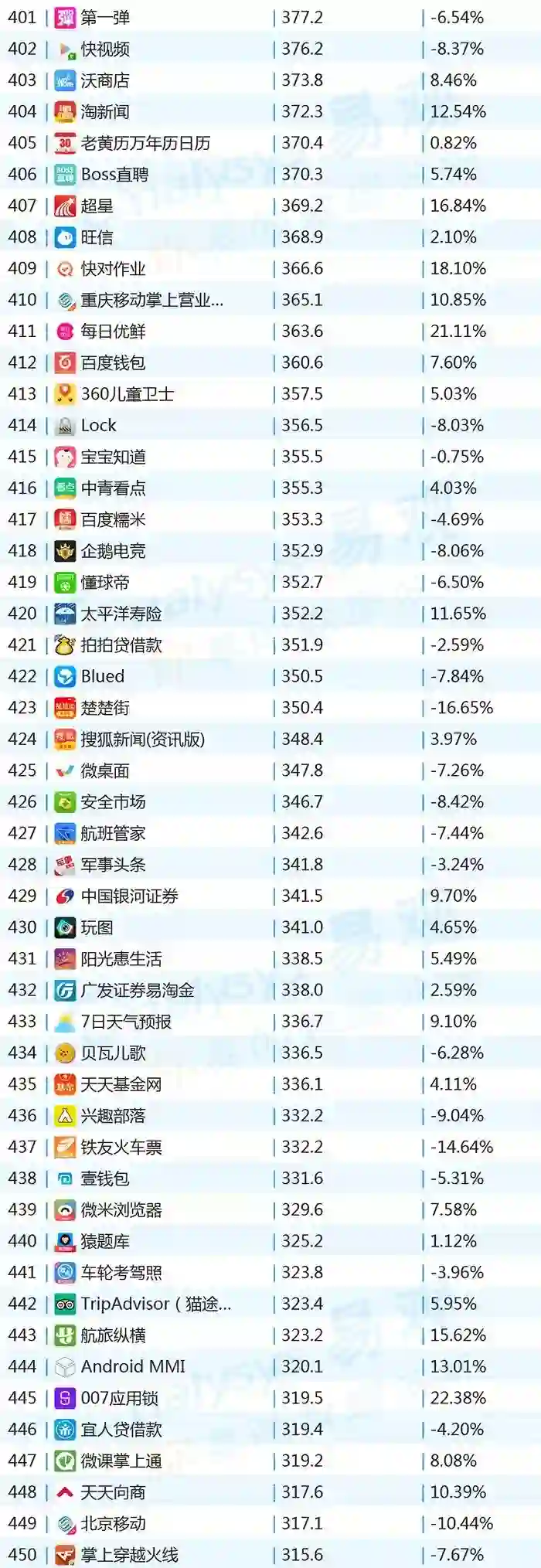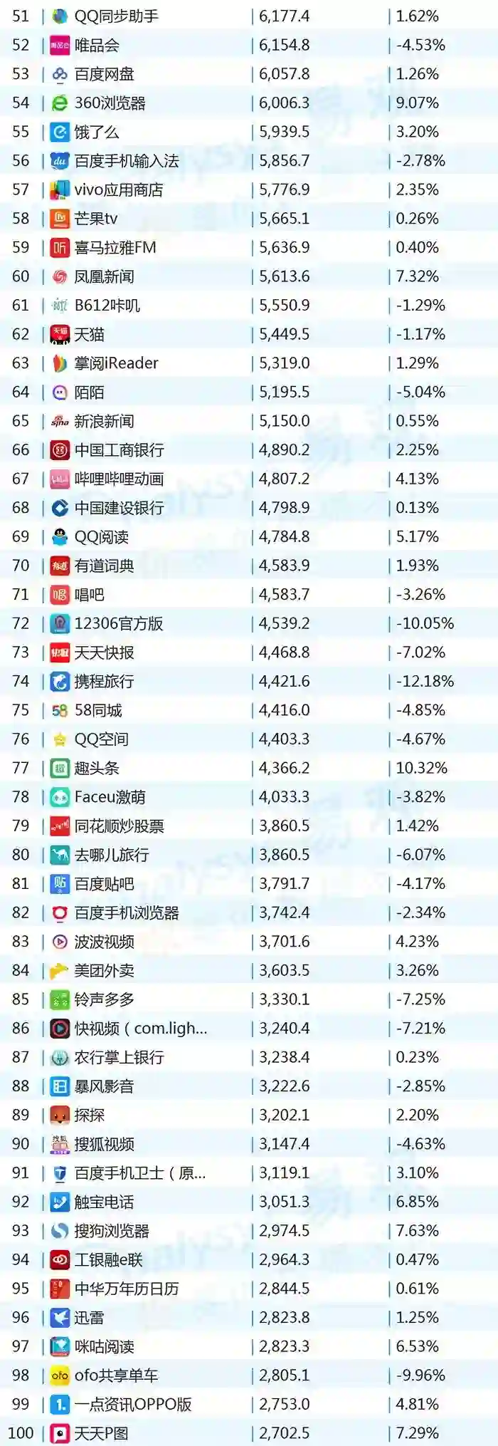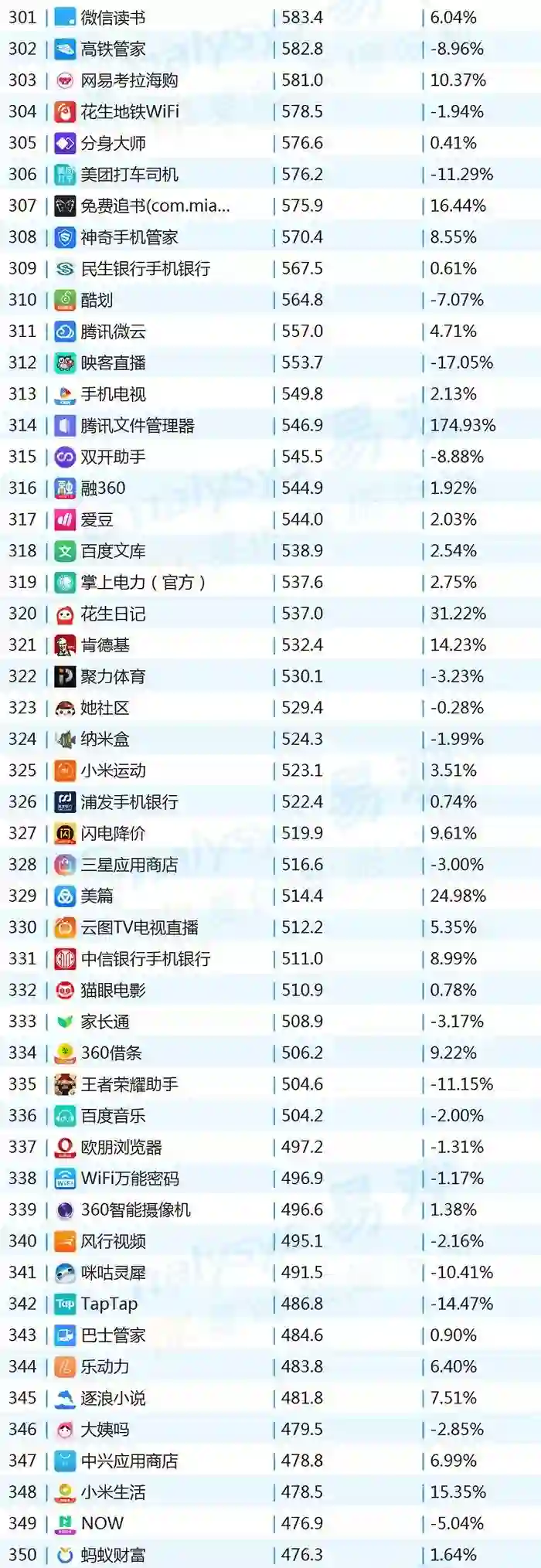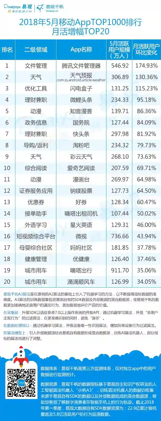 ▌增幅TOP20:上证指数上涨带动证券类用户活跃,微视联手《创造101》增势显著