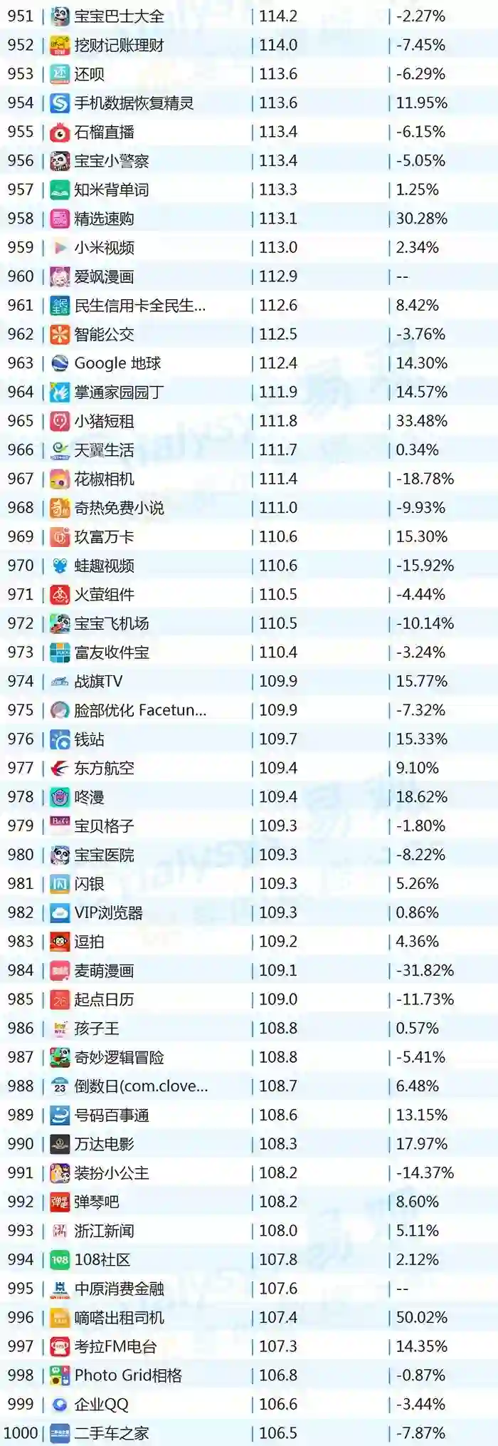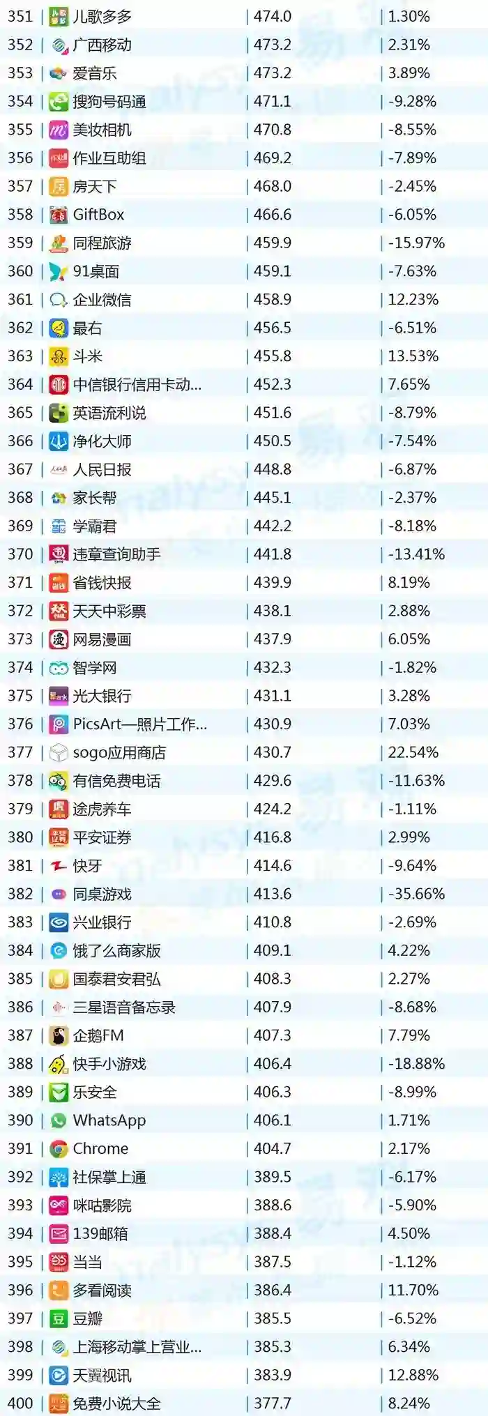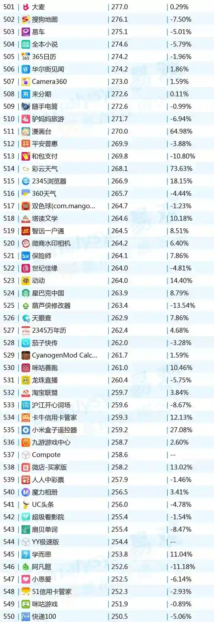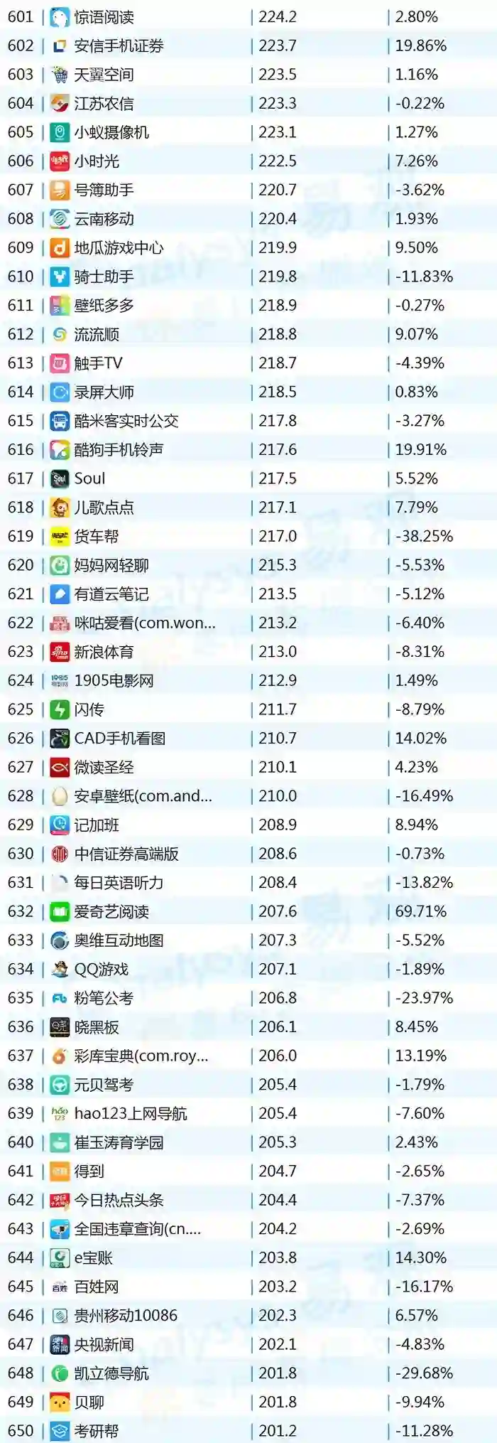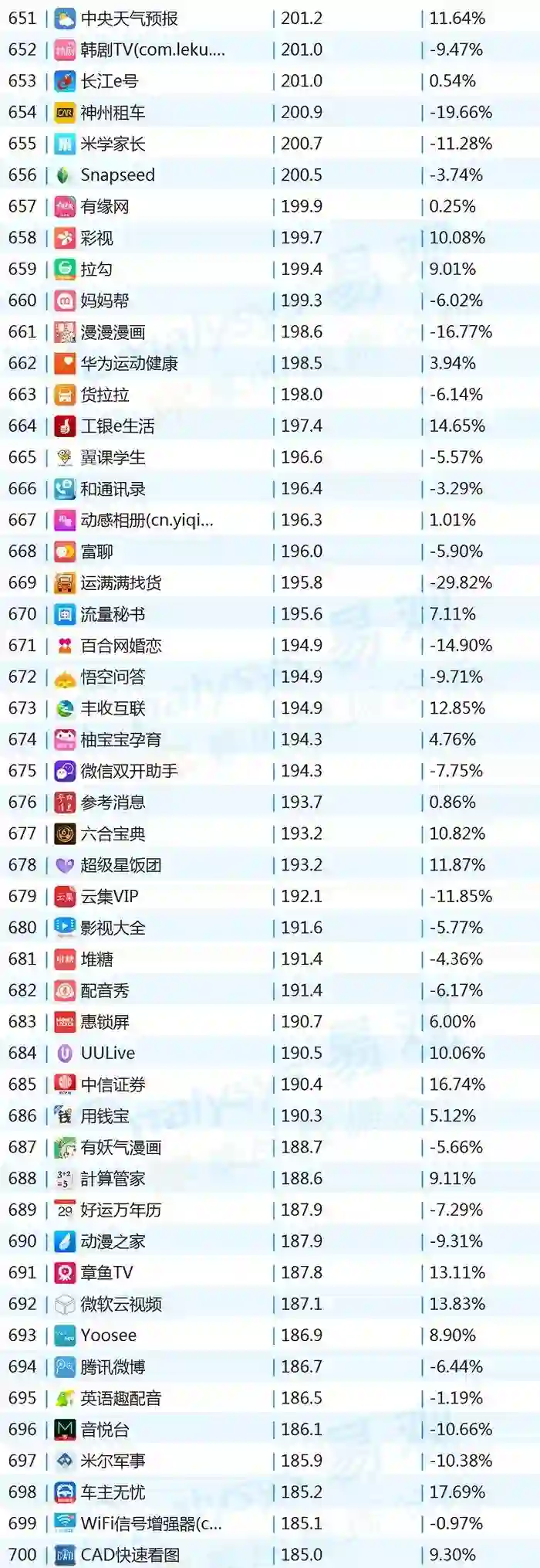 ▌增幅TOP20:上证指数上涨带动证券类用户活跃,微视联手《创造101》增势显著