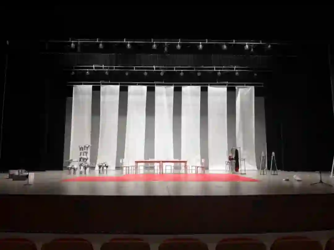 我们就是一直在这样的条件下排剧、演剧的,尽管太简陋了连我们自己也经常自嘲,但是大家凑在一起排剧的时候每个人都是很开心的,支撑我们的真的就是对于戏剧那种非常赤诚的热爱。而且我们六月份演出,教室连电风扇都不能开,不然挡墙的泡沫板子会飞起来,所有人都满头大汗。