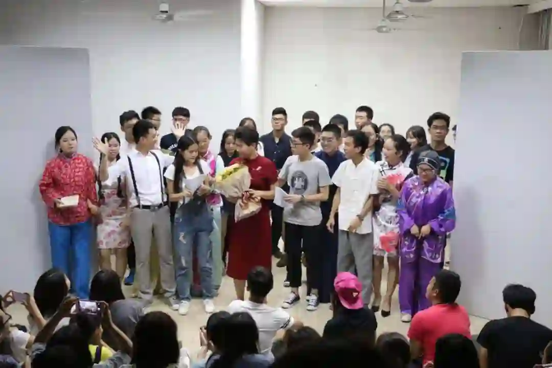 “我们一直在搞独幕剧,因为这样就可以在别人办演出的时候把自己给塞进去。我们自己想办演出怎么办呢?去找一个大一点的空教室——就这个还是得向物业走后门求来的,然后把桌椅搬空,在教室后面空出来一块大一点的场地,教室后面还有一个凸字型的凹陷,我就去学院里翻出来一大块旧泡沫板把那挡上,后面就权且当个后台了。