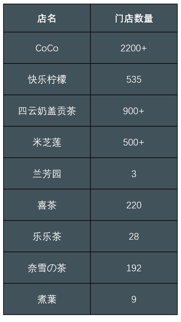 CoCo线下门店最多,已达2200多家,产品性价比高、开放加盟让CoCo得以迅速扩张。同样身为街头奶茶的快乐柠檬,比起CoCo规模小很多,大陆线下门店只有500多家。