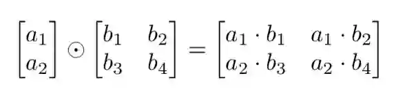 Hadamard 积是元素之间的乘积,并得出一个向量。从下图可以看出来 Hadamard 积就是将向量对应元素相乘积。