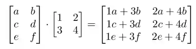 矩阵乘法是由一组乘法法则组成,他们共同作用以乘得一个新矩阵。