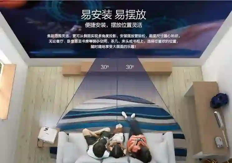 而传统的投影仪就复杂不少,首先是对安装环境有要求,客厅或房间要足够大,而安装的准备工作也较为繁杂,需要确认很多条件。
