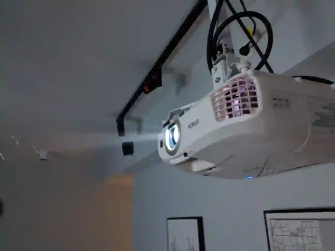 但这终究是妥协之举,投影仪发热散热以及相伴的噪音都会对坐在近处的人造成一些不适,走线也是个问题。由于我在装修之初就考虑了安装问题,因此选择了吊顶正投安装。