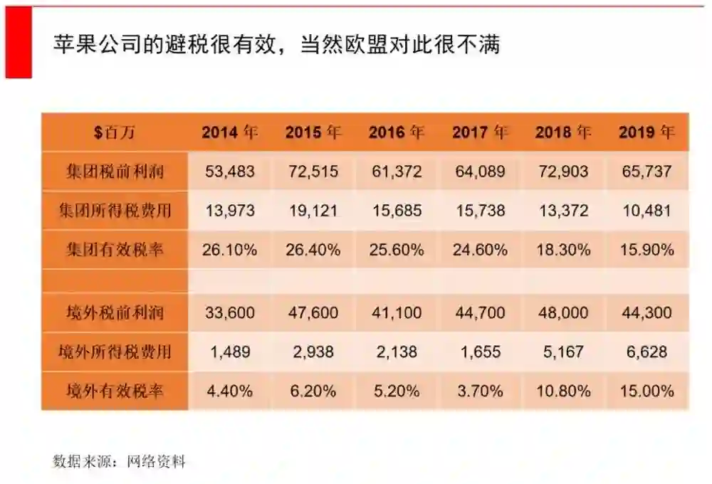 1、苹果在爱尔兰设立苹果国际销售公司(Apple Sales International,“爱尔兰销售公司”),这家公司负责接收除了美国以外地区的所有销售收入,享受爱尔兰12.5%的低企业所得税税率;