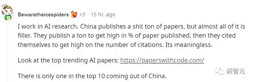 一个自称在AI行业工作的研究人员表示,虽然中国发表了大量人工智能领域的论文,但「几乎所有的论文都是无用的重复。他们大量发文,以获得较高的论文发表率,然后再引用自己的论文。这毫无意义。」