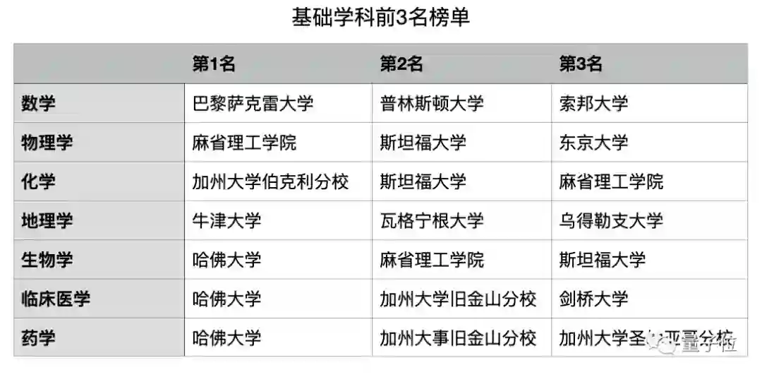 就拿一些基础学科来说,前3名基本上都由美国、欧洲高校占领。