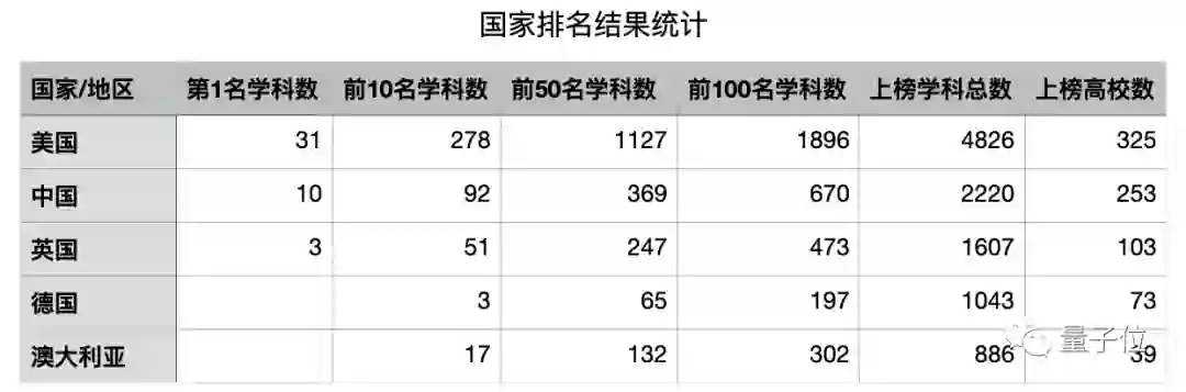 而其中,世界前十的学科数量,还位于全球第五的位置。
