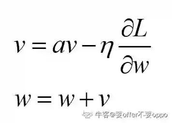 其公式意义为,如果一直朝着某个方向前进,那么在这个方向上的梯度会越来越大。当使用SGD时,会出现过度振荡,徘徊前进,而在这个过程中其实那个梯度分量过大的方向的梯度其实在慢慢减小的,原本梯度分量较小的方向在慢慢增大,动量思想可以放大这个过程,使得模型尽快收敛。