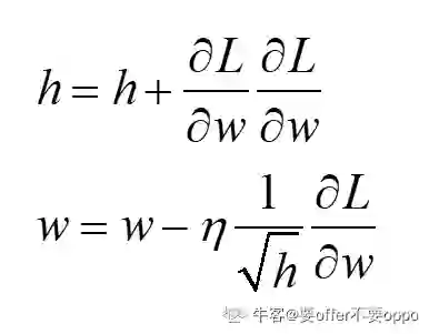 其与动量思想殊途同归,用不同的方法解决相同的问题。h是梯度累积和,求梯度更新的时候,除以它,可以有效的削减大梯度,利于小梯度方向。