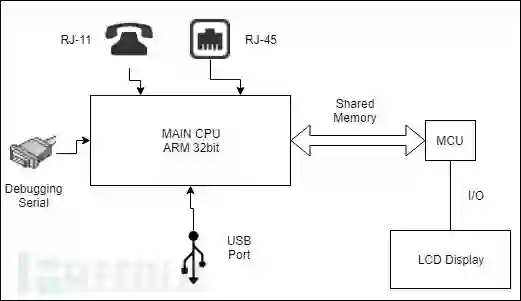 我们测试的多功能一体机是基于ARM 32bit的CPU架构的大端存储模式(Big-Endian),主CPU使用共享存储区与控制LCD屏幕的MCU元件进行通信。
