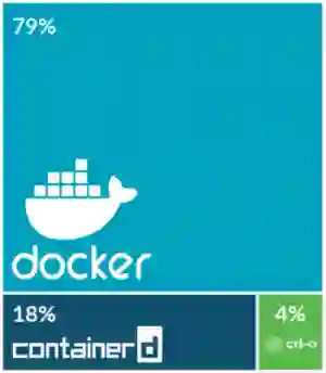 在 Sysdig 发布的 2019 容器使用报告中,我们可以看到 Docker 容器占据市场规模最大的容器运行时 (79%),containerd 是 Docker 贡献给 CNCF 社区的开源容器运行时,现在也占据了一席之地,并且得到了厂商的广泛支持;cri-o 是红帽公司推出的支持 OCI 规范的面向 K8s 的轻量容器运行时,目前还处在初级阶段。