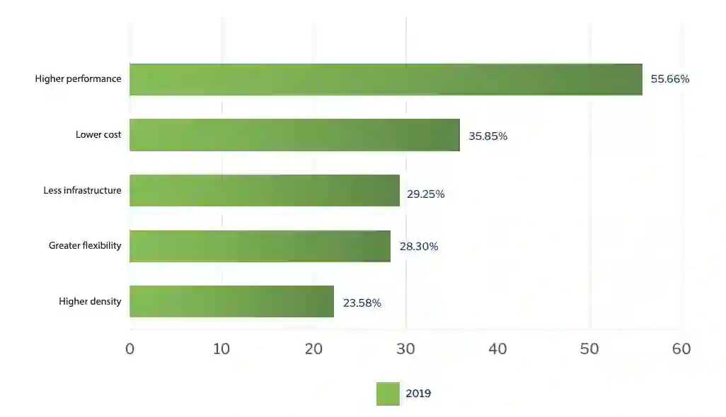 在 Dimanti 2019 年的容器调查报告中,对专有云用户选择裸金属服务器来运行容器的主要原因进行了分析。