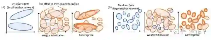 一个相近的研究是FAIR大佬Tian, Yuandong的《Luck Matters: Understanding Training Dynamics of Deep ReLU Networks》。文中验证运气的方式是提出了一种小teacher-大student的训练框架(基于ReLU的MLP),然后发现,对于一个参数足够小使得node间overlap很小的teacher小网络,student大网络中和teacher网络中重合度最高的node对应的权重收敛速度更快,并且那些无关权重的fanout会渐渐向0收敛。