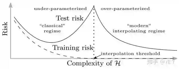这个曲线可能看上去过于随意了些,后续有个工作把这个现象和颗粒物质的阻塞现象联系了起来,里面的实验结果看上去更加明显一些。虽然个人感觉这个现象到了CNN上有可能站不住脚(如果有哪位大佬试了,或者发现有人试了恳请留言告知),但是至少说明了一个其实很显然的结论:用传统观点看待神经网络的过参数化是行不通的。